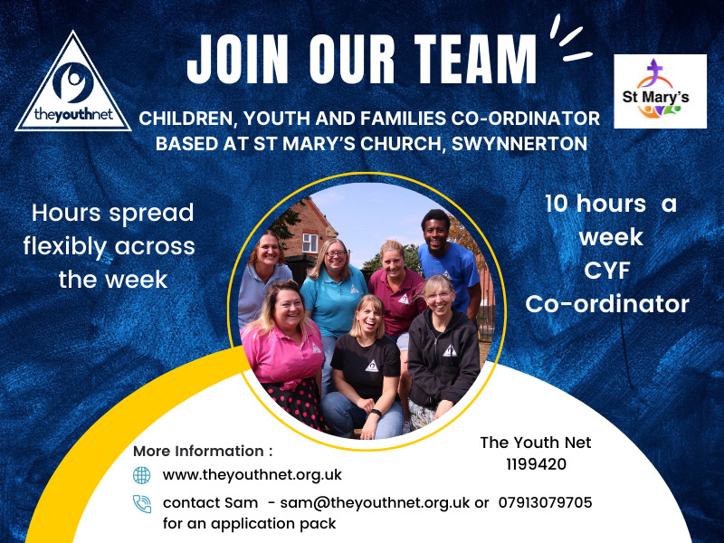 St. Mary's church in Swynnerton is seeking an enthusiastic Children and Youth Worker in partnership with The Youth Net.
